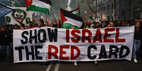 Il 14 ottobre 2025, in occasione della partita di calcio Italia-Israele, si è svolta a Udine la manifestazione nazionale “Show Israel the red card” contro la partecipazione della nazionale di calcio israeliana alle qualificazioni per la prossima Coppa del mondo e contro la normalizzazione del genocidio nella Striscia di Gaza per mano israeliana.