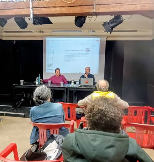 La questione della militarizzazione delle scuole ha suscitato interesse e molte sono state le domande del pubblico. La discussione si è allargata anche alle università, alla situazione di guerra internazionale, alle attività didattiche percorribili dentro le aule, al contributo che internamente ed esternamente alle scuole può dare chi alla guerra e alla militarizzazione vuole opporsi.