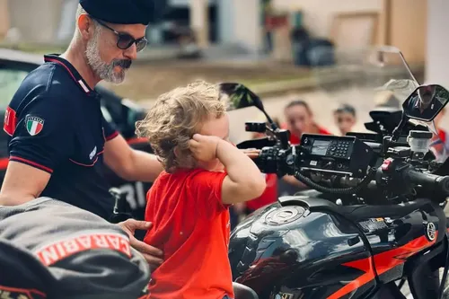 Leggiamo che: “l’entusiasmo è cresciuto durante la dimostrazione del motociclista dell’Arma” […] che ha invitato le/i bimb3 a “salire in sella per qualche foto ricordo” (si veda la foto in allegato ). Le/i bambin3 sono presentati come “entusiasti” e coinvolti “un’atmosfera serena e gioiosa”, illuminati da “un sorriso luminoso e affettuoso”.