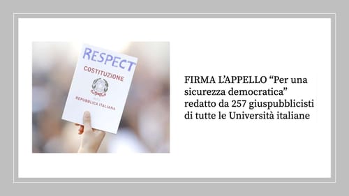 ROARS - Monday, May 5, 2025Il Decreto Sicurezza “presenta una serie di gravissimi profili di incostituzionalità“. In primo luogo, la decretazione d’urgenza, “senza che vi fosse alcuna straordinarietà, né alcun reale presupposto di necessità e di urgenza” costituisce una “violazione è del tutto ingiustificata e senza precedenti” delle prerogative del Parlamento. Nel merito, poi, è un decreto che punta a reprimere il dissenso e comprime alcuni diritti fondamentali, tassello fondamentale in qualunque democrazia. Non usa mezzi termini l’appello pubblico promosso da 237 i giuristi italiani, tra cui tre presidenti emeriti della Corte Costituzionale. Le firme sono raccolte sul sito di Articolo21.