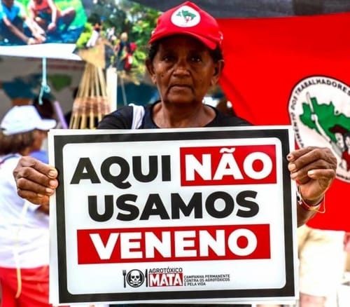 Da qualche anno non andiamo in Brasile, ma siamo sempre grandi Amigos di Via Campesina Inter-nazionale (un movimento mondiale di 200 milioni di piccoli contadini) e dei contadini brasiliani Senza Terra, che sono diminuiti di numero per l’offensiva spietata delle multinazionali mondiali dell’Agrobusiness, che li espellono dalla terra (l’urbanizzazione in Brasile è arrivata al 92%, come in Argentina) e continuano a deforestare, per coltivare prodotti per i mangimi, da esportare per gli allevamenti intensivi in Europa e Cina. Questi prodotti agricoli sono soprattutto la soia Ogm e Mais Ogm, coltivati in Brasile (e anche in Argentina), dove si utilizzano pesticidi proibiti in UE (atrazina, acefato, clorotalonil e clorpirifos, i quattro più usati, pesticidi venduti in Brasile, anche da aziende con sede in Ue. In Italia, dove finora è proibito fare coltivazioni Ogm, mangiamo, beati, questi prodotti, spesso ultra-processati, di animali nutriti nei nostri allevamenti intensivi con questi foraggi, coltivati con pesticidi proibiti in Ue, perché patogeni… D’altronde sulle etichette di questi prodotti è proibito scrivere cosa ha mangiato l’animale: la multinazionale tedesca Bayer, che produce enormi quantità di pesticidi, anche proibiti, e medicinali non vuole.