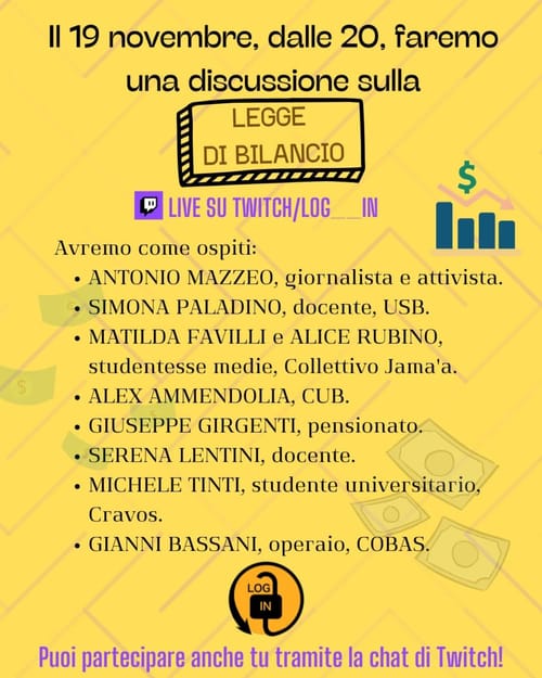#norearmeurope Mercoledì 19 novembre dalle ore 20: Discussione su #Legge di #Bilancio 2026