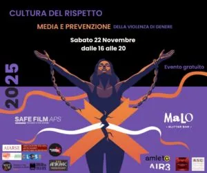 Nell’ambito della Giornata Internazionale per l’eliminazione della violenza contro le donne Safe Film APS organizza questo incontro con 11 associazioni del settore cinema e audiovisivo, con il patrocinio di Roma Capitale.