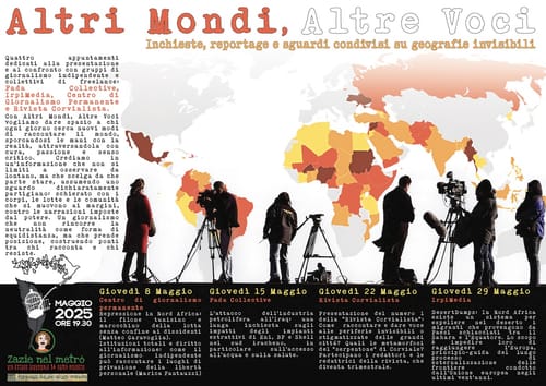 Con Altri Mondi, Altre Voci vogliamo dare spazio a chi ogni giorno cerca nuovi modi di raccontare il mondo, sporcandosi le mani con la realtà, attraversandola con cura, passione e senso critico. Crediamo in un’informazione che non si limiti a osservare da lontano, ma che scelga da che parte stare, assumendo uno sguardo dichiaratamente partigiano: schierato con i corpi, le lotte e le comunità che si muovono ai margini, contro le narrazioni imposte dal potere. Un giornalismo che non rincorre la neutralità come forma di equidistanza, ma che prende posizione, costruendo ponti tra chi racconta e chi resiste.