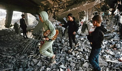 Bambini palestinesi che camminano tra le rovine di un edificio nel quartiere di Zeitoun, la scorsa settimana. AFP/OMAR AL-QATTAADall’inizio del cessate il fuoco tra Israele e Hamas all’inizio di ottobre, secondo i dati del Ministero della Salute di Gaza e un rapporto pubblicato venerdì dall’UNICEF, ogni giorno sono stati uccisi in media due bambini palestinesi. I risultati indicano anche che a Gaza persiste una grave carenza di cibo.