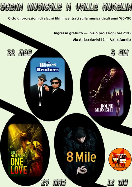 Spazio Sociale Occupato Ex 51 - Thursday, May 16, 2024SCENA MUSICALE A VALLE AURELIA Ciclo di proiezioni di alcuni film incentrati sulla musica degli anni ‘60-‘90 Il ruolo della musica nel cinema è ben noto a tutti, e conosciamo maestri come Ennio Monnicone e John Williams che di ciò … Continua a leggere→