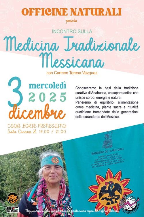 presenta Sala Cinema dalle 19 alle 21 MEDICINA TRADIZIONALE MESSICANA con Carmen Teresa Vazques