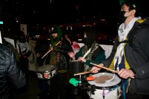 New York City è divisa in cinque boroughs, parola che si traduce con quartiere, circoscrizione, zona. Si tratta di spazi talmente estesi che sono essi stessi città – per esempio Brooklyn, dove abito, è circa quattro volte Milano. Organizzare in una megalopoli un movimento umanamente coeso, al cui interno si sviluppino forme di amicizia e condivisione, non è facile; per arrivarci i ragazzi hanno letteralmente digitalizzato la Grande Mela annettendole pure il New Jersey. Il movimento è concepito in maniera federata e divisibile in gruppi seguendo la logica dei boroughs; dopo di che, attraverso l’uso di piattaforme digitali (Signal – Google drive – Instagram), la mappa così ripartita viene riportata in rete. Ad esempio, io appartengo a Central Brooklyn (ci sono anche South e North), dunque se voglio partecipare ad azioni di strada, gruppi di studio, banchetti informativi ecc mi relaziono con i gruppi della mia zona attivi durante la settimana. Ogni lunedì i quartieri convergono al People’s Forum, dove, tra le varie attività, si decide la pianificazione dei prossimi sette giorni e le piattaforme vengono aggiornate in conseguenza. L’impatto sulla città è capillare.