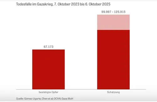 Finora, l'unica fonte ufficiale per il numero di morti è stata il Ministero della Salute della Striscia di Gaza, che ha raggiunto 67.173 morti nei primi due anni di guerra. Tuttavia, l'agenzia è gestita da Hamas, motivo per cui i suoi dati sono messi in discussione dal governo israeliano e da osservatori internazionali. DIE ZEIT ha inoltre diffuso le informazioni del ministero solo con riserve.