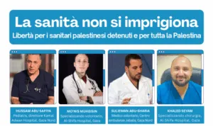 Chiediamo al personale sanitario di tutta Italia di mobilitarsi mercoledì 10 dicembre per manifestare la propria solidarietà ai colleghi palestinesi illegalmente imprigionati e chiedere al governo, alle istituzioni sanitarie e scientifiche italiane che si attivino al più presto per ottenere da Israele la liberazione immediata dei sanitari palestinesi illegalmente imprigionati dal governo israeliano.