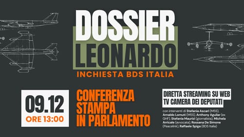 Martedì 9 dicembre, su invito della deputata Stefania Ascari (M5S, Presidente dell'Intergruppo per la Pace tra la Palestina e Israele), BDS ITALIA presenterà un dossier sulle complicità di Leonardo S.p.A. nei crimini di guerra commessi in Palestina.