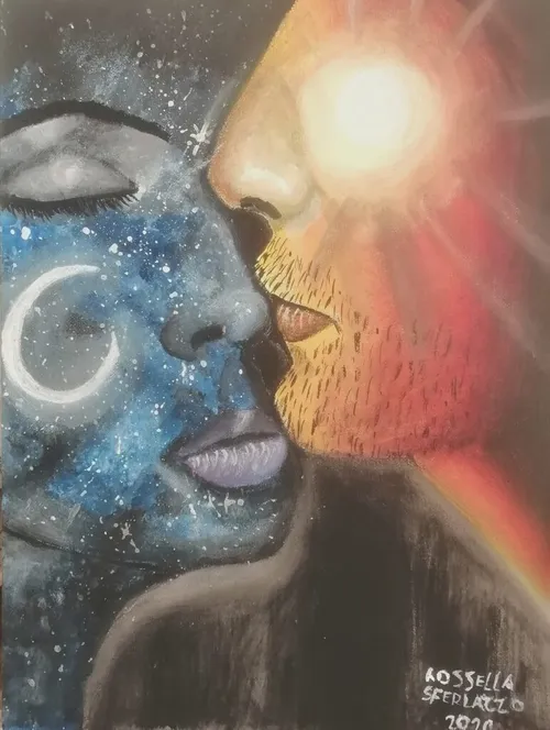 “Secret kiss”: acrilico su cartoncino telato dipinto da Rossella SferlazzoQualche domenica fa ero sull’autobus verso casa, carico di bagagli: uno zaino pesante sulla schiena e un trolley, al cui manico, esteso in tutta la sua lunghezza, avevo assicurato una borsa frigo. I posti a sedere erano occupati, ma una ragazza non distante da me mi ha offerto il suo: si è alzata e ha indicato il sedile. Sono rimasto sorpreso da questo gesto gentile e ho risposto di no, però “grazie del pensiero”. Ho proseguito il viaggio in piedi e riflettuto a lungo sulla parola “pensiero”: perché ho ringraziato per il pensiero? In fondo, ho trovato in quell’invito un vero pensiero per l’Altro, cioè cura e preoccupazione per il prossimo dato nelle sue condizioni concrete, immerso in uno spazio-tempo e in una rete di rapporti sociali che lo condizionano. O, quantomeno, la gentilezza di quella persona incontrata casualmente sui mezzi pubblici conteneva il seme di tutto ciò.