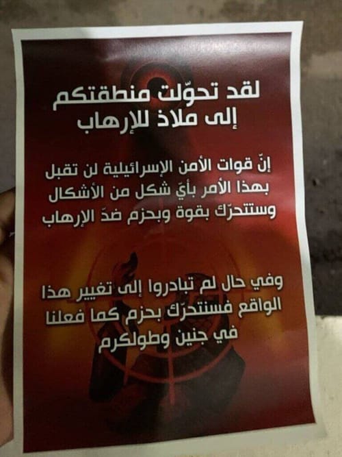 E se non prenderete l’iniziativa di cambiare questa realtà, allora agiremo con determinazione, come abbiamo fatto a Jenin e Tulkarem».