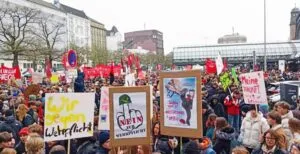 Oggi oltre 55.000 studenti (il dato iniziale di 40.000 è stato successivamente corretto) sono scesi in strada, nonostante la repressione e le minacce da parte dei ministeri dell’istruzione, dei dirigenti scolastici e delle autorità competenti. In molti luoghi, però, gli studenti sono stati sostenuti anche dai genitori e dagli insegnanti, ad esempio dal sindacato dell’istruzione e della scienza (GEW)”, riassume il portavoce nazionale Hannes Kramer. A Monaco di Baviera, già la sera del 4 dicembre oltre 2.000 persone sono scese in strada per manifestare contro la reintroduzione del servizio militare obbligatorio.