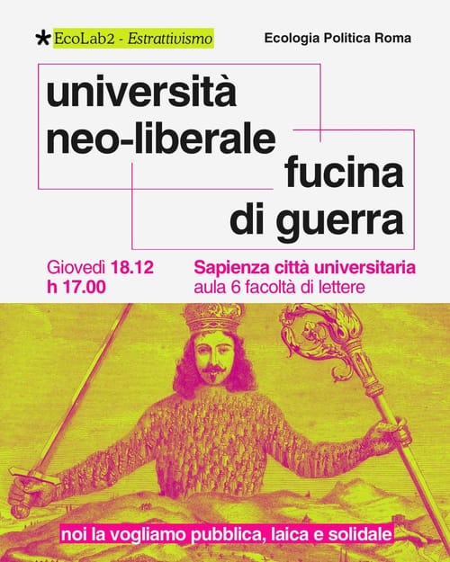 [2025-12-18] UNIVERSITÀ NEOLIBERALE: FUCINA DI GUERRA @ Edificio Di Lettere e Filosofia - Aula VI autogestita