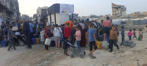 Distribuzione di acqua filtrata a Gaza (progetto SOS Gaza)In questo periodo di guerre diffuse, potrebbe essere necessario rivisitare alcuni principi riguardanti il conflitto armato tra Stati e il ruolo dei popoli. In questi tempi di profonda confusione, sembra necessario chiarire che non stiamo parlando dal punto di vista delle istituzioni esistenti, ma piuttosto dell’anticapitalismo e della resistenza alla violenza e al genocidio in corso.