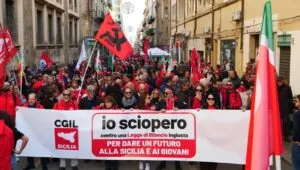 A Palermo si sciopera anche contro la manovra regionale che, così come la manovra nazionale, non dà risposte all’esponenziale aumento delle diseguaglianze, non investe neanche un euro per il diritto allo studio in una regione che vede andar via ogni anno 30.000 giovani, come denuncia Alfio Mannino, segretario della Cgil siciliana dal palco montato di fronte al palazzo d’Orleans, sede della Presidenza della Regione.
