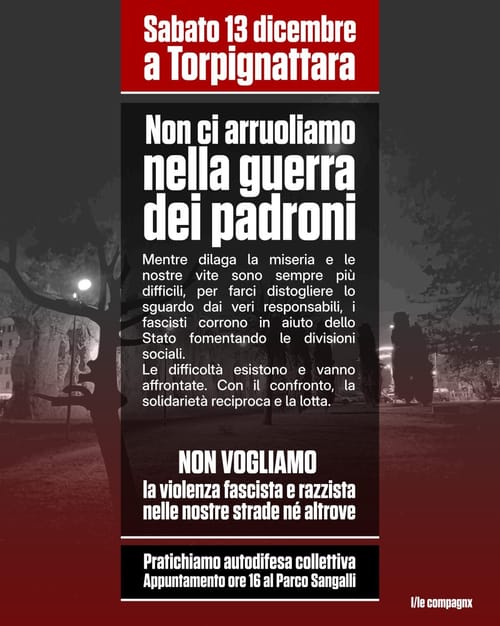 Gancio de Roma - Saturday, December 13, 2025Non ci arruoliamo nella guerra dei padroni