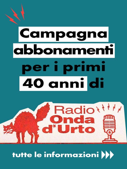 Per i primi 40 anni della Radio, da lunedì 15 a sabato 20 dicembre 2025 la programmazione quotidiana sarà dedicata in buona parte alla Campagna Abbonamenti della nostra e vostra emittente. Dentro lo Spazio Approfondimenti, dalle ore 11.10 a mezzogiorno e dalle ore 17.40 alle ore 18.45 riprenderemo file storici dai nostri archivi, per ripercorrere e attualizzare assieme il nostro percorso di lotta e di informazione dal basso, senza un secondo di pubblicità.