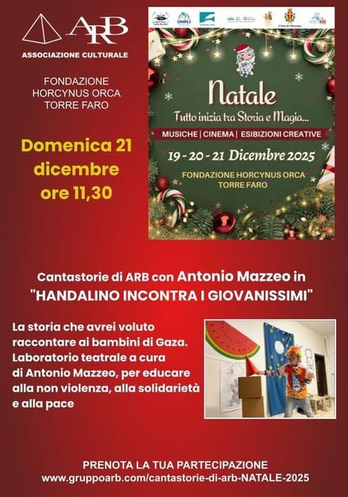 #stopthegenocideingaza🇵🇸 Handalino, Coniglio Clown e il Vecchio Marinaio a #Messina domenica 21 dicembre ore 11.30 con 'La fiaba che avrei voluto raccontare ai bimbi di #Gaza"