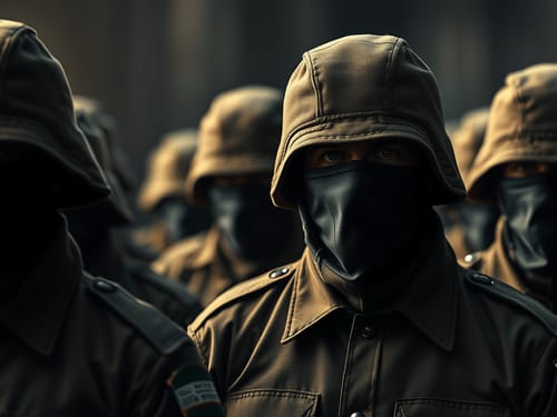 Ci domandiamo cosa ci si deve aspettare dalla lettura integrale del pezzo. Poi la prima fotografia e la prima sensazione di sorpresa si tramuta in sgomento. Ci chiediamo “Ma veramente è possibile posare sorridenti vestiti da militari in assetto di guerra, con tanto di tuta mimetica, caschetto, mitra spianati (fortunatamente finti) ed un manichino che fa le veci di un cadavere?”. Ci chiediamo quale progetto sottenda una tale macabra e irriverente immagine e ci sembra uno sfregio alle reali vittime di conflitti, veri, non posticci, che adesso, in questo momento, in ogni secondo delle nostre giornate, per ora, per noi, ancora pacifiche, affollano la Storia.