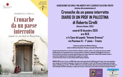 Trieste 19 dicembre. Presentazione del libro “Cronache da un paese interrotto, diario di un prof in Palestina” di Roberto Cirelli