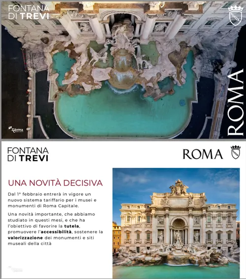 Questo nuovo sistema renderà gratuito l’accesso ai musei civici e ai monumenti di competenza di Roma Capitale per tutti i residenti della Città Metropolitana introducendo al contempo un ingresso a pagamento a due euro per turisti e non residenti alla Fontana di Trevi, con l’obiettivo di governarne i flussi, tutelare il monumento e migliorare la qualità della fruizione.