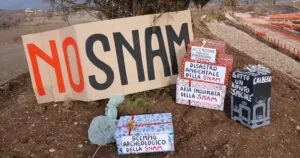 “La Snam ha avuto un bel pensiero per la città allestendo un albero di natale su una collina artificiale ben visibile anche da lontano – hanno dichiarato gli attivisti -, peccato però che la Snam si sia dimenticata di mettere sotto l’albero i doni per i cittadini. A questo abbiamo rimediato noi portando dei pacchi regalo con su scritto: “aria inquinata”, “distruzione ambientale”, “scempio archeologico”, “attenzione rischio esplosioni”, “opera inutile”. Questi sono i veri pacchi che la Snam sta rifilando al nostro territorio”.