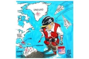 Rileggere ora, alla luce di detti principi, i rapporti di Trump con gli Ucraini, i Palestinesi, i Venezuelani, i Nigeriani, i Cubani e gli Europei …. cosi come l’evoluzione della situazione riguardante la Groenlandia , il Canada, il Messico …; e, all’opposto , i rapporti con Israele, Russia, Cina, Arabia Saudita. Per non parlare della devastazione del clima e della vita della Terra e la lotta per la supremazia nell’ultrapotente universo dell’Intelligenza artificiale. Allo stato attuale delle cose, soprattutto dopo la quasi-totale blanda reazione degli altri Stati latino -americani, del Medio Oriente e dell’Europa per quel che ha fatto in Venezuela (presa di controllo manu militari del governo del paese, in particolare del suo petrolio), tutto indica che non dovremmo aspettare per molto tempo il giorno in cui Trump deciderà di occupare la Groenlandia, con le buone o con le cattive, come sostiene apertamente. L’annessione della Groenlandia mi sembra più vicina e probabile dell’invasione militare del Canada, malgrado il fatto che in questi giorni circoli surrettiziamente un documento »segreto » del governo USA relativo ad un piano d’ invasione del Canada. Tutto dipenderà dalla mobilitazione dei cittadini americani ed europei. la reazione dei governi europei essendo probabilmente portata a cercare la sottomissione via compromessi.