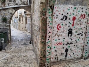 Invece per la maggior parte dei palestinesi con cui ho parlato, l’Islam è una questione di appartenenza prettamente culturale, per alcuni anche religiosa, certo, ma non per tutti. Islam vuol dire portare avanti dei principi e dei valori umani universali, presenti in tutte le religioni. Vuol dire aiutarsi, essere solidali, non lasciare nessuno senza cibo. Per le strade palestinesi è veramente difficile trovare qualcuno che fa l’elemosina, non ce n’è bisogno, ci sono reti di solidarietà attive che aiutano chi è in difficoltà. Per le strade palestinesi non devi neanche preoccuparti di portare o non portare il velo, è una tua scelta, vedi tu. Più in generale, l’approccio che ogni famiglia o persona ha con la propria religione è svariato, un po’ come qui in Italia, ma il rispetto per le “altre persone del libro”, cioè ebrei (non israeliani ovviamente) e cristiani è molto forte e sentita.