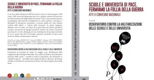 Tra pochi giorni sarà disponibile in tutte le librerie fisiche e online il volume che raccoglie gli Atti del II Convegno Nazionale dell’Osservatorio contro la militarizzazione delle scuole e delle università dal titolo Scuole e Università di Pace. Fermiamo la follia della guerra, Aracne, Roma 2025. https://osservatorionomilscuola.com/2026/01/16/prenota-copia-scuole-universita-pace-fermiamo-follia-guerra-atti-convegno-nazionale-osservatorio/
