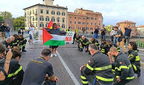 Il 22 settembre, sui lungarni di Pisa, nel giorno dello sciopero proclamato dall’USB a sostegno della Global Sumud Flotilla e di Gaza, Claudio Mariotti e altri nove pompieri hanno osservato un minuto di silenzio. In ginocchio. Un gesto sobrio, nonviolento, limpido. Le immagini sono diventate virali. E lo Stato ha risposto non con rispetto, ma con repressione.