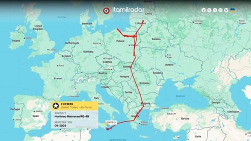 Dopo aver lasciato la base siciliana, il “Global Hawk” ha attraversato lo spazio aereo della Grecia e dei Balcani, per poi dirigersi verso la Polonia e la Lituania. A conclusione della missione, il drone ha fatto rientro verso Sigonella.