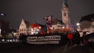 Centinaia di persone protestano a Davos prima della visita di Trump