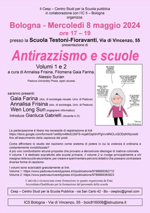 Il Cesp – Centro Studi per la Scuola pubblicain collaborazione con l’IC 5 – Bologna organizza: