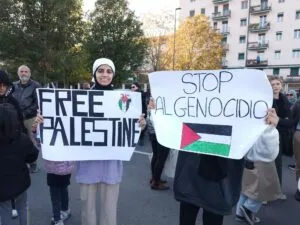 A Milano il 14 maggio si è tenuta una grande manifestazione con fiaccolata per dire non al genocidio e alla complicità del governo italiano con esportazioni di armi e commercio di tecnologia militare.