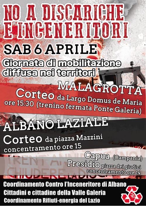 - CORTEO ad Albano alle 15:00 in Piazza Mazzini, contro l’apertura del cantiere dell’inceneritore.