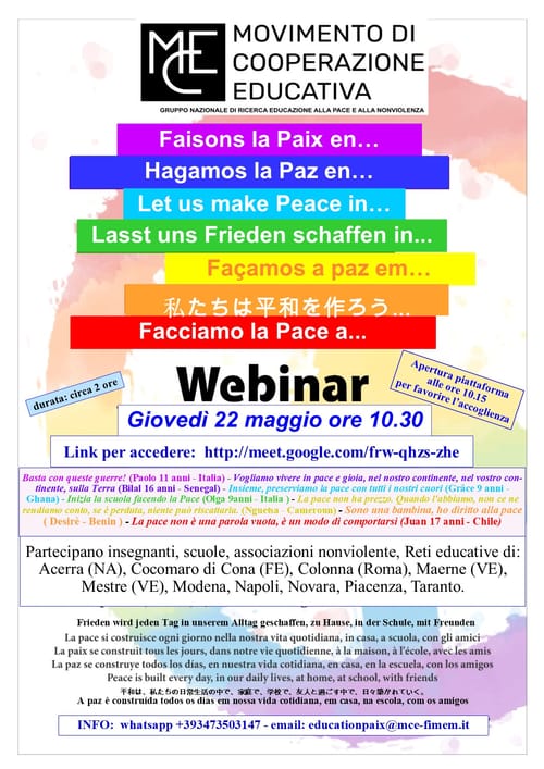 Faccialo la pace a ... webinar organizzato dal GN educazione alla Pace e alla Nonviolenza - 22 maggio ore 10.30