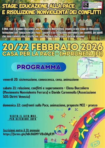 Movimento di Cooperazione Educativa - Sunday, January 11, 2026Lo Stage di Educazione alla Pace organizzato dal nostro GN Gruppo Educazione alla Pace e alla Nonviolenza.