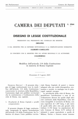 DISEGNO DI LEGGE COSTITUZIONALE: “Modifica dell’articolo 114 della Costituzione in materia di Roma Capitale” (2564)