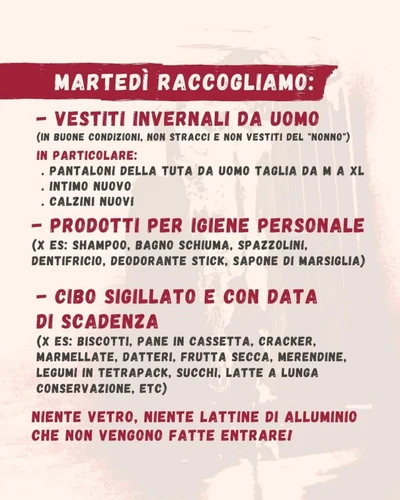 No cpr, No frontiere Libertà! - Wednesday, February 4, 2026Benefit per i reclusi del CPR di Gradisca e discussione su zone rosse, sicurezza, frontiera e detenzione amministrativa. 10 febbraio, ore 18Via del Bosco 12/C (Trieste)Dagli sgomberi del porto vecchio di Trieste alla situazione dei reclusi nel CPR di Gradisca, passando per i nuovi decreti sicurezza, un unico filo lega quella che può essere definita una […]