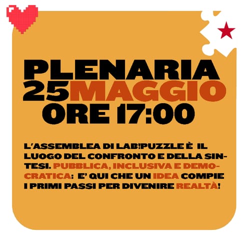 LABPUZZLE β Bene Comune - Thursday, May 22, 2025Come sempre ore 17:00 piano terra! βοΈ ππππππ πππ ππππππ:Lβodg si redige in mailing list ed Γ¨ in continuo aggiornamento. Per iscriversi occorre partecipare ad almeno unβassemblea. Sul nostro π¬π’ππ¨ (questo da cui stai leggendo) o nellβevento su FB trovi tutte le info necessarie!ππΜ ππ πππππ πππππ πππ πππππ?Γ riservato uno spazio allβinterno di ogni […]