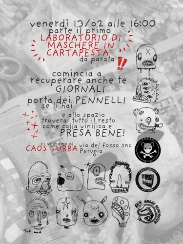 Lab di maschere in cartapesta per street parade, a cura di Smash Repression Perugia.