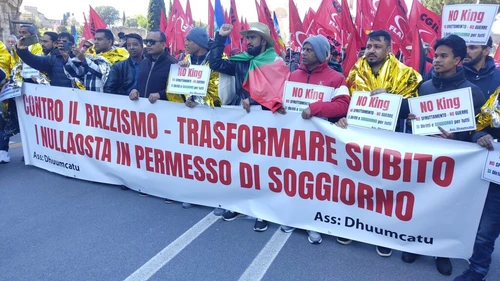 Le storie che hanno camminato in corteo raccontano meccanismi precisi. I cittadini bengalesi truffati dal decreto flussi si sono ritrovati senza lavoro e senza permesso di soggiorno, costretti a lavorare in nero e in condizioni di sfruttamento. Ma anche chi i documenti ce li ha non se la passa meglio: ogni rinnovo, ogni cambio di lavoro diventa una potenziale trappola burocratica, in una precarietà strutturale che rende le persone ricattabili e prive di tutele reali. I braccianti lavorano per pochi euro all’ora con orari massacranti, vivono nei ghetti e chiedono da tempo alloggi dignitosi e un salario minimo al di sopra della soglia di povertà.