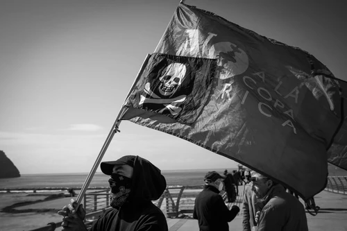 Per circa un’ora i manifestanti sono rinasti nel cantiere spingendosi fino all’ingresso principale per i camion, mentre le forze dell’ordine impedivano l’accesso a chi provava a raggiungerli. Intorno alle 11 il gruppo si è ricompattato ed è tornato prima sul pontile e poi nel quartiere per comunicare al resto degli abitanti ció che era emerso durante la giornata. (rete no america’s cup)