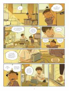 A questo, Galandon e Crouzat aggiungono, con sapiente maestria, degli strumenti per esplorare la psicologia dei due giovani protagonisti, nel caso di Akiko abbiamo il suo telefono, con il quale la giovane mostra la propria voglia di aprirsi al mondo e rimanere in contatto con le altre persone, che troverà un importante risvolto nell’epilogo della storia. Per il chiuso Osamu, invece, abbiamo appunto gli Yokai, che sembrano tradurre i veri pensieri del ragazzo più che agire come veri e propri spiriti: dal piccolo spirito pigro e indolente, a quello sboccato e dispettoso, essi forniscono al lettore ulteriore materiali per capire i veri sentimenti del giovane protagonista.