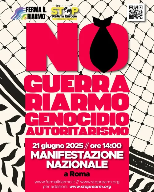 APPELLO A TUTTE LE INIZIATIVE, LE CAMPAGNE, LE RETI PER LA PALESTINA A CONVERGERE A ROMA IL 21 GIUGNO: “NO GUERRA, RIARMO, GENOCIDIO, AUTORITARISMO”