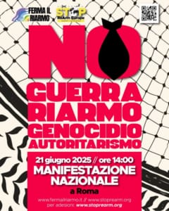 E invitiamo tutte queste iniziative, campagne, reti, vertenze, bandiere e simboli a convergere a Roma nella manifestazione nazionale del 21 giugno Stop Rearm Europe “No guerra, riarmo, genocidio, autoritarismo”