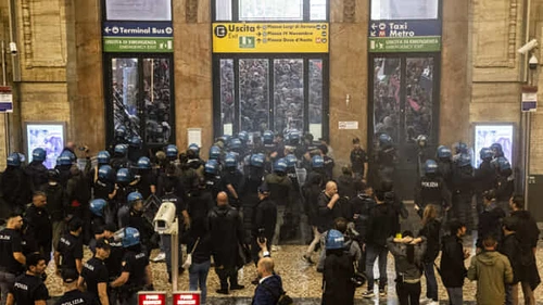 Milano è la piazza simbolo di quella giornata. Il corteo, forte di 30.000 persone, si svolge pacificamente fino all’arrivo davanti ai cancelli della stazione. In molte città italiane — da Palermo a Torino, passando per Venezia, Bologna e Brescia — vengono occupate stazioni, tangenziali e porti. Solo a Milano l’ingresso viene negato. È in quel momento che la richiesta si fa corale: tutti – giovani e adulti – spingono per oltrepassare i cancelli per un’occupazione annunciata come simbolica, nel quadro della giornata lanciata dallo slogan “blocchiamo tutto”. Non si apre alcun dialogo. Le forze dell’ordine intervengono prima con manganellate e successivamente con un fitto lancio di lacrimogeni ad altezza d’uomo nell’atrio della stazione. La tensione prosegue per ore. Gli scontri si spostano lungo via Vittor Pisani e si protraggono fino alla sera. Un lacrimogeno raggiunge anche un balcone, dove si sviluppa un principio d’incendio. Alcuni minori vengono fermati. I manifestanti restano sul posto fino al loro rilascio.