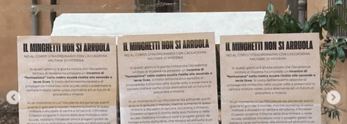Osservatorio contro militarizzazione di scuole e università - Monday, April 13, 2026Lo scorso 27 marzo studenti e studentesse del liceo Minghetti di Bologna hanno scioperato contro un corso di formazione dell’Accademia Militare di Modena che si sarebbe dovuto tenere nella loro scuola. Ne è seguito un incontro con il Dirigente scolastico che ha deciso di accogliere le ragioni della loro protesta e di annullare l’iniziativa con l’Esercito.